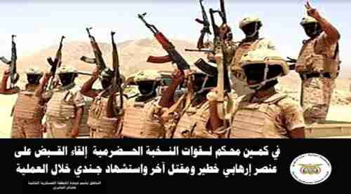 تفاصيل /قتل إرهابي واعتقال اخر في عملية لقوات النخبة الحضرمية بدوعن فــي عمليــة دقيقــة لقــوات النخبــة الحضــرميـة، وبمتـابعــة مـباشــرة مـن محــافظ محافظــة حضــرم...