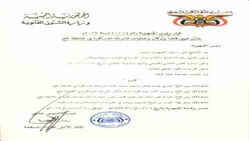 نص صدور قرارت رئاسية بمناصب عسكرية هامة اصدر رئيس الجمهورية القائد الأعلى للقوات المسلحة والأمن المشير ركن / عبدربه منصور هادي يوم أمس الس...