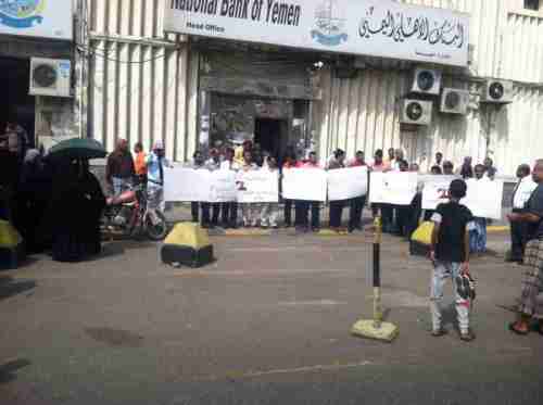 البنك الأهلي بعدن يعلن التصعيد المستمر : عدن نظم موظفو وموظفات البنك الاهلي اليمني من مختلف فروعه بعدن صباح اليوم الوقفة الاحتجاجية الثال...