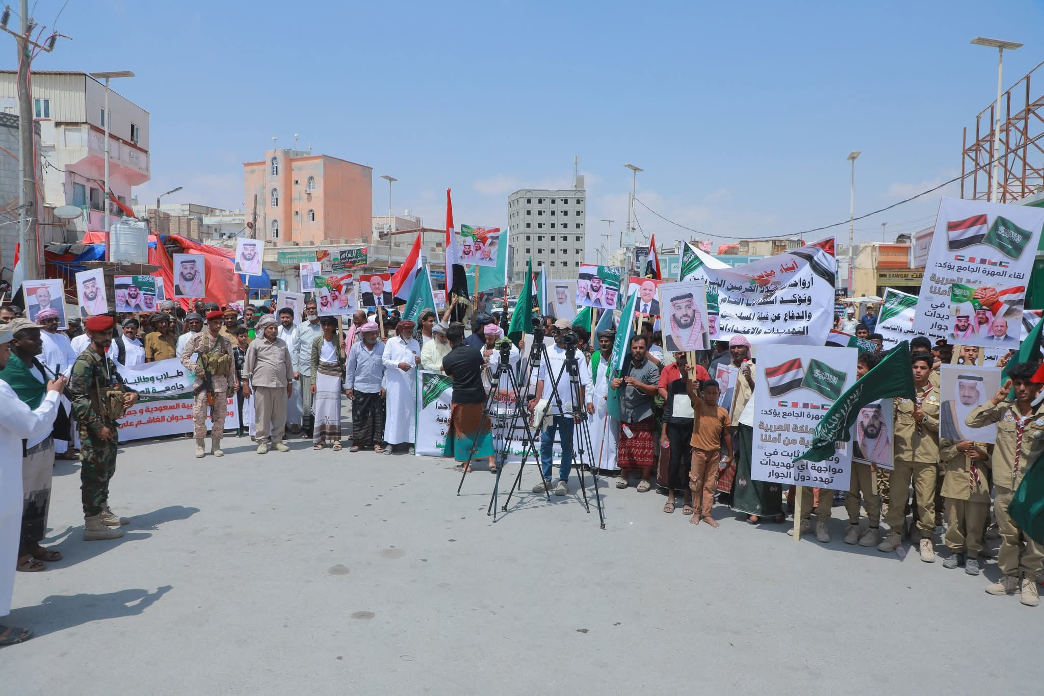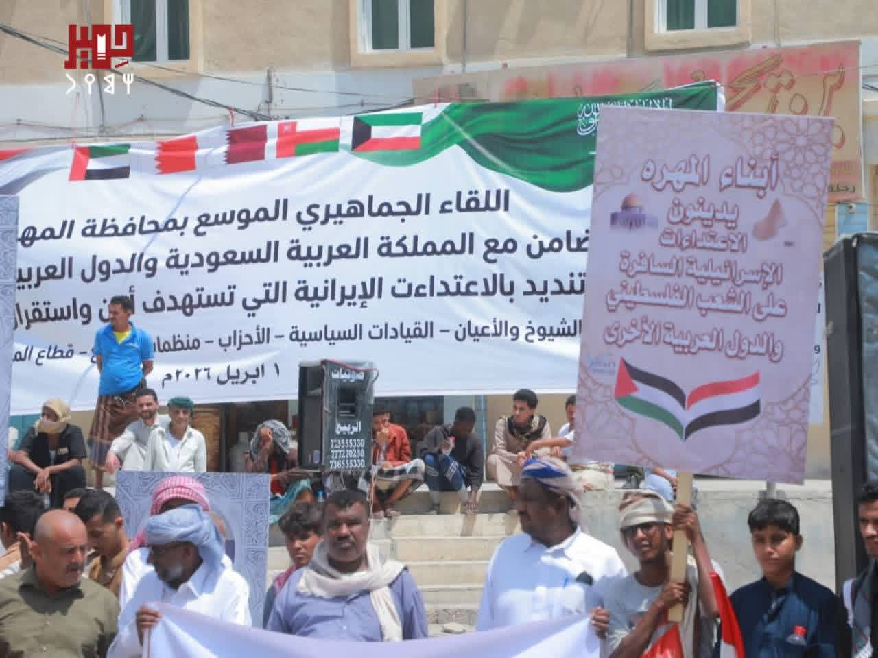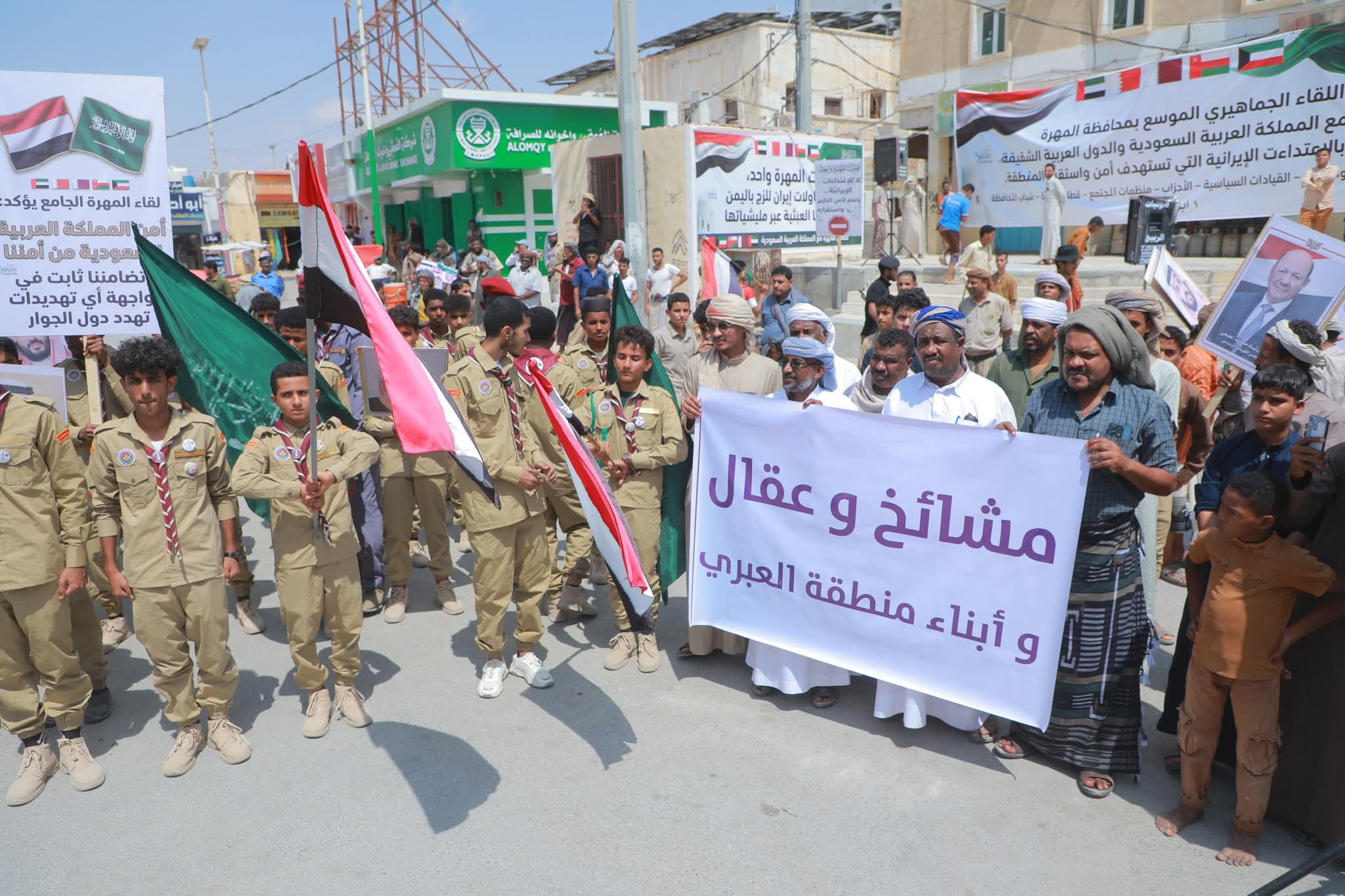 تظاهرة حاشدة في المهرة تؤكد التضامن مع السعودية وترفض الاعتداءات الإيرانية