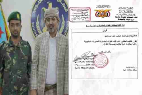 ونص القرار إلى مزاولة بن رشيد عمله رسميا كنائب لقائد القوات المشتركة، وتأمين الطرق وحمايتها في مديريات حبان والروضة وميفعة ورضوم.