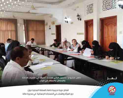 في إطار مشروع تعزيز مشاركة المرأة في عمليات الإغاثة والإنعاش والسلام في اليمن، افتتحت منظمة أجيال بلا قات للتوعية والتنمية، يوم السبت 1أكتوبر ٢٠٢٢، في مديرية صالة بمحافظة تعز الدورة التدريبية الخاصة بأصحاب السلطة في مديرية صالة حول "دور المرأة والشباب في الاستجابة الإنسانية".