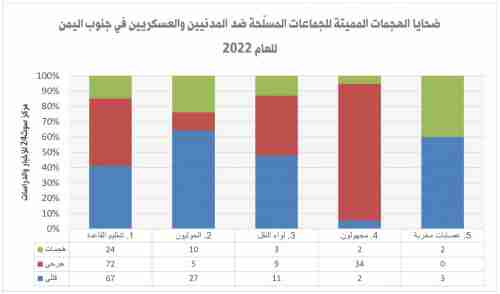 وبحسب التقرير السنوي، المكون من 100 صفحة، رصد مركز سوث24 ما يزيد عن 24 هجوما لتنظيم القاعدة في محافظات أبين وشبوة والضالع خلّفت 67 قتيلا وقرابة 72 مصابا بينهم مدنيين. فضلا عن عمليات اغتيال طالت قيادات جنوبية بارزة. كما بلغت عدد الهجمات التي قادتها جميع التنظيمات المسلّحة في الجنوب 41 هجمة، تسببت بمقتل 110 شخص من العسكريين والمدنيين وإصابة 120 آخرين. ولم تشمل هذ الإحصائية ضحايا المعارك المباشرة في جبهات الصراع العسكرية.