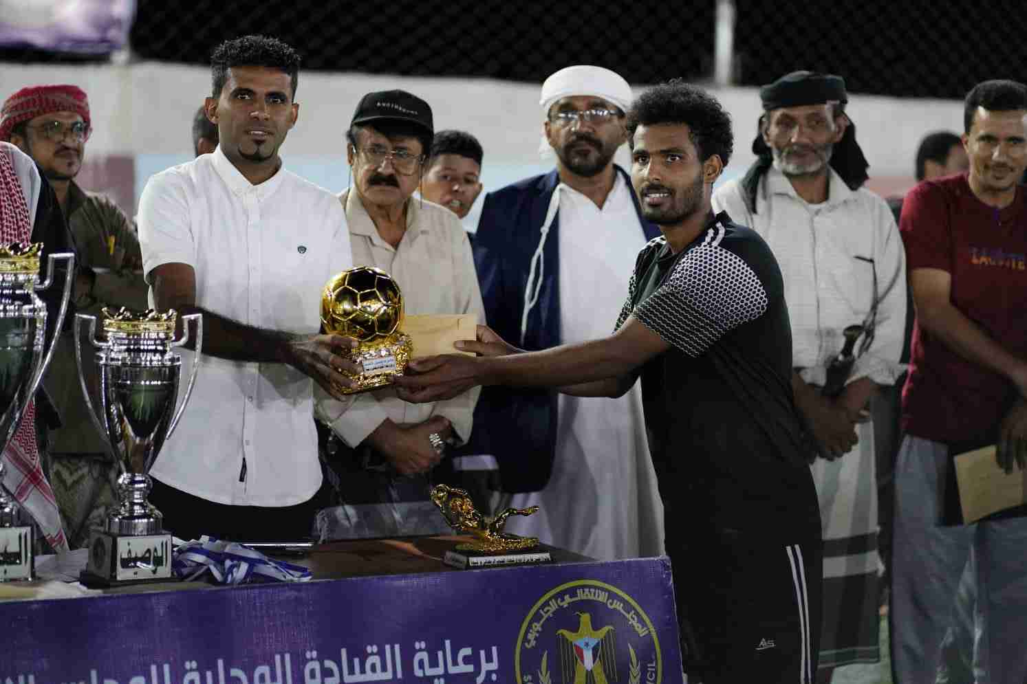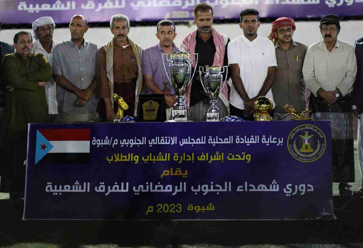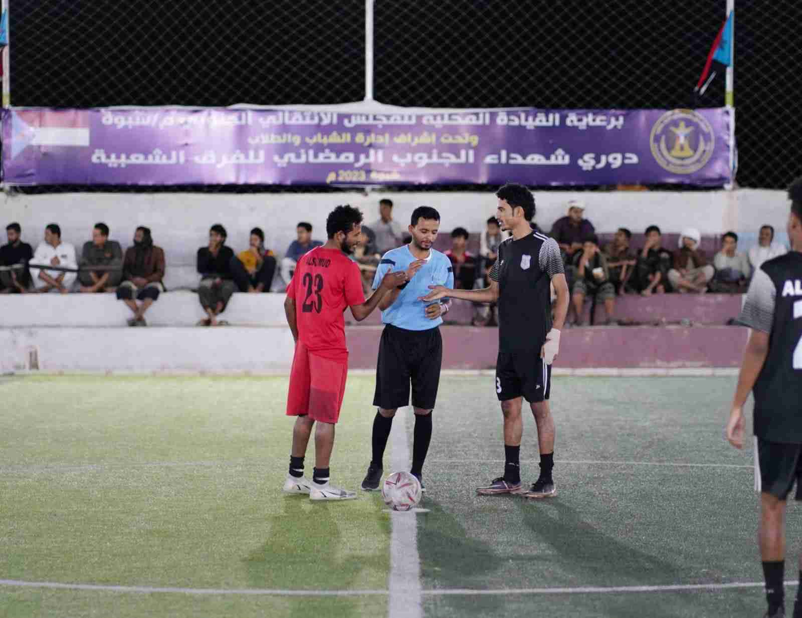 . توّج مساء أمس الجمعة فريق فخر العاصمة ببطولة دوري شهداء الجنوب الرمضاني بعد فوزه على فريق صمود أكتوبر، بثلاثة أهداف لهدف في ملعب ذيبان إسباير، والتي تقام برعاية القيادة المحلية للمجلس الانتقالي الجنوبي م/ شبوة، وتحت إشراف إدارة الشباب والطلاب بتنفيذية انتقالي شبوة. مجريات المباراة افتتح عبدالغني باحيدر لاعب فخر العاصمة النتيجة لصالح فريقه بهدف في الدقيقة التاسعة، وبعدها بدقيقتين يعود نفس اللاعب ليعزز تقدم فريقه بالهدف الثاني، وأضاع بعدها فرصة هدف محققة، وحاول صمود أكتوبر في هجمات إلا أنها لم تترجم إلى أهداف، لينتهي الشوط الأول بتقدم فخر العاصمة بهدفين مقابل لاشيئ. الشوط الثاني حاول صمود أكتوبر تقليص الفارق وكان لهم ما أرادوا بهدف مبارك محرق الذي أعطى الأمل لفريقه بالعودة، وحاول بعدها صمود اكتوبر بهجمات أغلبها من كرات عالية تنتهي عند حارس أو مدافعيّ فخر العاصمة، وتبعتها هجمات لفخر العاصمة مهدرة، ماعدا كرة ناصر حميدة الأخيرة إذ انفرد بحارس صمود اكتوبر ووضعها في شباكه قبل نهاية المباراة بخمس دقائق، وبعدها لم يجد أي جديد في المباراة لتنتهي على حالها بفوز فخر العاصمة بثلاثة أهداف لهدف. بعدها أقيمت مراسيم تتويج القائمين على البطولة وتم تكريم رئيس اللجنة التنظيمية الكابتن الخضر بوجليدة بدرع تقدير لجهوده في إنجاح البطولة، وتكريم عدد من الإعلاميين والمنظمين وحكام المباريات بشهائد تقديرية. ومن ثم تم تكريم الجوائز الفردية والتي كان لفريق فخر العاصمة نصيب الأسد بفوز لاعبه شيخ العمودي بجائزة أفضل لاعب في البطولة ومبلغ 25000، وحارسهم رماح الجبري بجائزة أفضل حارس في البطولة ومبلغ 25000، وهداف الفريق عبدالغني باحيدر كهداف للبطولة ومبلغ 25000. وتم بعدها تكريم الوصيف فريق صمود أكتوبر بكأس المركز الثاني والميداليات الفضية ومبلغ 100000، وبعدها تم تكريم أبطال الدوري فريق فخر العاصمة بكأس البطل والميداليات الذهبية ومبلغ 200000. شهدت المباراة النهائية حضور مدير عام مكتب الشباب والرياضة م/شبوة الأستاذ محسن سنان، والأستاذ سيلان حنش مدير الأدارة التنظيمية بتنفيذية انتقالي شبوة، والأستاذ علي الحرملي رئيس أتحاد كرة القدم فرع شبوة، والأستاذ جمال شنيتر مدير الإدارة الإعلامية بتنفيذية انتقالي شبوة، والأستاذ عبدالرحمن الحرملي مدير إدارة الشباب والطلاب بتنفيذية انتقالي شبوة ونائبه خالد عطيف، والأستاذ محمد عبدالعليم عضو الجمعية الوطنية بالمجلس الأنتقالي الجنوبي، والأستاذ ناصر مقلم رئيس القيادة المحلية للمجلس الأنتقالي الجنوبي بمديرية عتق، ورئيس نادي التضامن الأستاذ أحمد لقور ونائبه أحمد عبدالله رويس السليماني، والكابتن عبدالله السلال فدعق ابو فهمي.