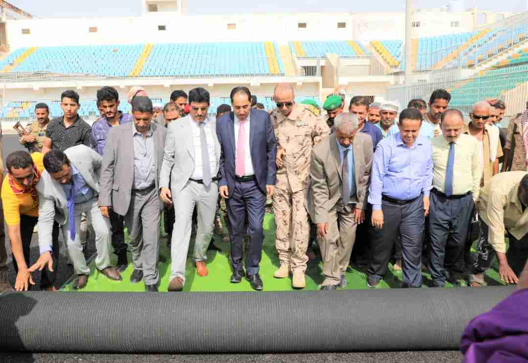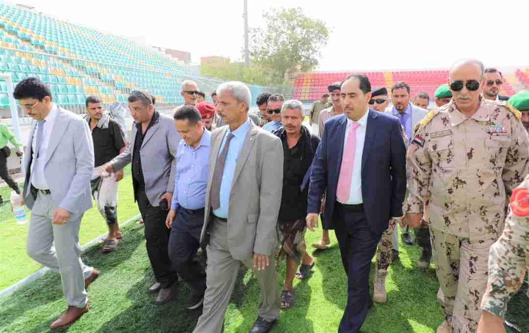 وزير الشباب والرياضة يزور محافظة لحج ويدشن فرش ملعب معاوية بالعشب الصناعي