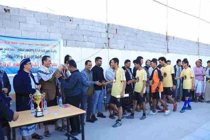 رئيس جامعة شبوة يحضر المبارة النهائية لدوري كلية الادارة والاقتصاد .