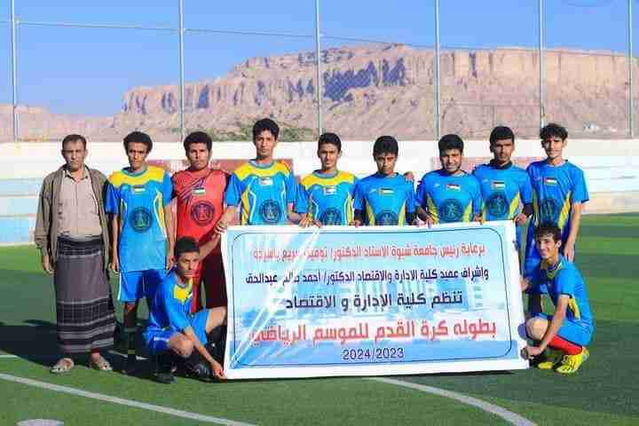 اختتم مساء اليوم دوري كلية الادارة والاقتصاد بمباراة جمعت بين فريقي المحاسبة2 والاقتصاد حيث بدأت المبارة بحماس وندية افتتح المحاسبة النتيجة في الدقيقة الثالثة عن طريق عبدالله سريب واستمرت محاولة الفريقين التسجيل حيث تمكن فريق المحاسبة من تسجيل الهدف الثاني قبل نهاية الشوط الأول بدقيقة عن طريق اللاعب مشتاق..ومع بداية الشوط الثاني إضافة صائل بلبحيث الهدف الثالث للمحاسبة..لكن مدرب الاقتصاديات أجرى بعض التغييرات التي مكنت الفريق من استعادة انفاسة وتسجيل هدفين متتاليين عن طريق نجم الفريق سعيد الحارثي..استمر الضغط من قبل فريق الاقتصاديات بغية تسجيل هدف التعادل وسط تراجع فريق المحاسبة للمحافظة على النتيجة. إلا أن صافرة الحكم معلنة نهاية المباراة بفوز فريق المحاسبة على الاقتصاديات بنتيجة 3-2 وبعد ذلك قام راعي المباراة الاستاذ الدكتور توفيق سريع باسردة رئيس جامعة شبوة ومعه الاستاذ الدكتور خالد سريع نائب رئيس الجامعة لشئون الطلاب والدكتور أحمد بن عبدالحق عميد كلية الادارة والاقتصاد بتكريم المنظمين والداعمين ومن ثم تكريم المشاركين والمبرزين حيث حصل اللاعب شوقي سيف على جائزة أفضل لاعب و صالح السوداني هداف البطولة وحسين جلال افضل حارس كما تم تكريم فريق المحاسبة بكأس البطولة وفريق الاقتصاديات بكأس الوصيف حضر حفل التكريم الاستاذ عبدالله الخليفي مدير عام عتق والدكتور عيدروس قطن عميد كلية النفط والدكتور محمد لصور مدير مركز التدريب والتنمية المستدامة والاستاذ محمد العشلة مدير عام محو الأمية والاستاذ عبدالرحمن الحرملي مدير دائرة الشباب والطلاب والاستاذ عوض بسارة مدير الاتحادات والأندية والدكتور فريد العولقي نائب العميد لشؤون الطلاب والدكتور سالم المصري رئيس قسم الاقتصاديات والاستاذ محمد سعيد حبتور امين الكلية والاستاذ ماجد البغدادي القائم بأعمال رئيس قسم إدارة الاعمال والاستاذ ناطق التوم مسجل الكلية والاستاذ مهدي باهطير رئيس اللجنة المنظمة وعدد من اعضاء الهيئة التدريسية وجمهور غفير امتلأت به مدرجات الملعب