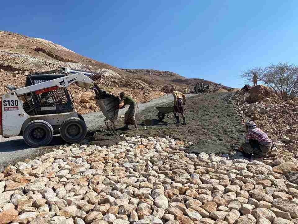 شبوة. الفرق الفنية تواصل أعمال المرحلة الاخيرة في مشروع توسعة وردم ورصف عقبة المعجاز عرماء.