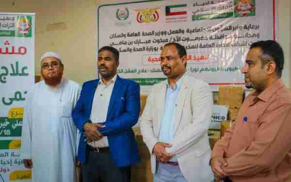 الوكيل باضاوي و الجمحي يدشنان مشروع استلام أدوية وعلاجات حمى الضنك والفشل الكلوي و عمليات العيون مقدمة من جمعية إحياء التراث الإسلامي بدولة الكويت