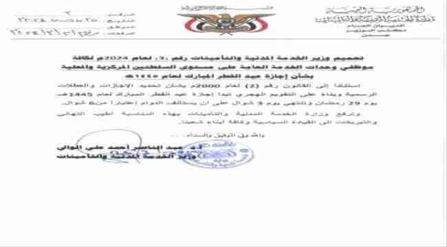 تعميم من وزارة الخدمة المدنية بشأن إجازة عيد الفطر المبارك