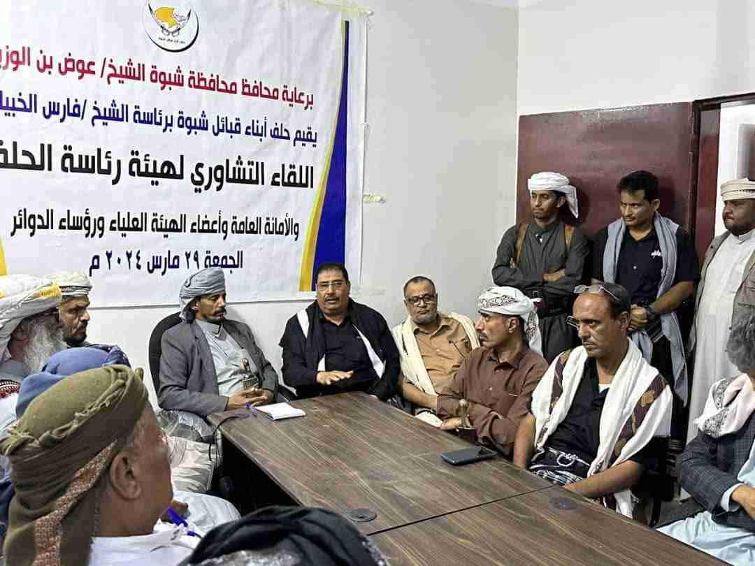 حلف أبناء قبائل شبوة يعقد لقاء تشاوريا لهيئة رئاسة الحلف والأمانة العامة واعضاء الهيئة العلياء ورؤساء الدوائر
