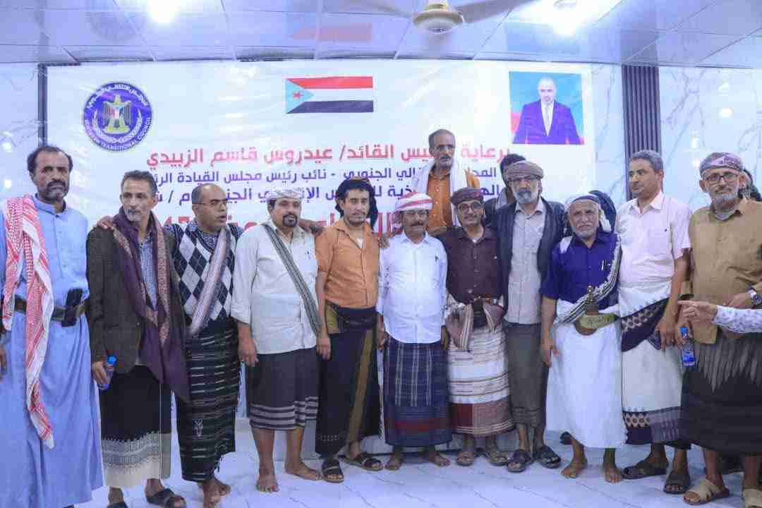 برعاية الرئيس الزبيدي. انتقالي شبوة يقيم مأدبة إفطار جماعي لقيادة المجلس الانتقالي والسلطة المحلية والشخصيات الاجتماعية بالمحافظة