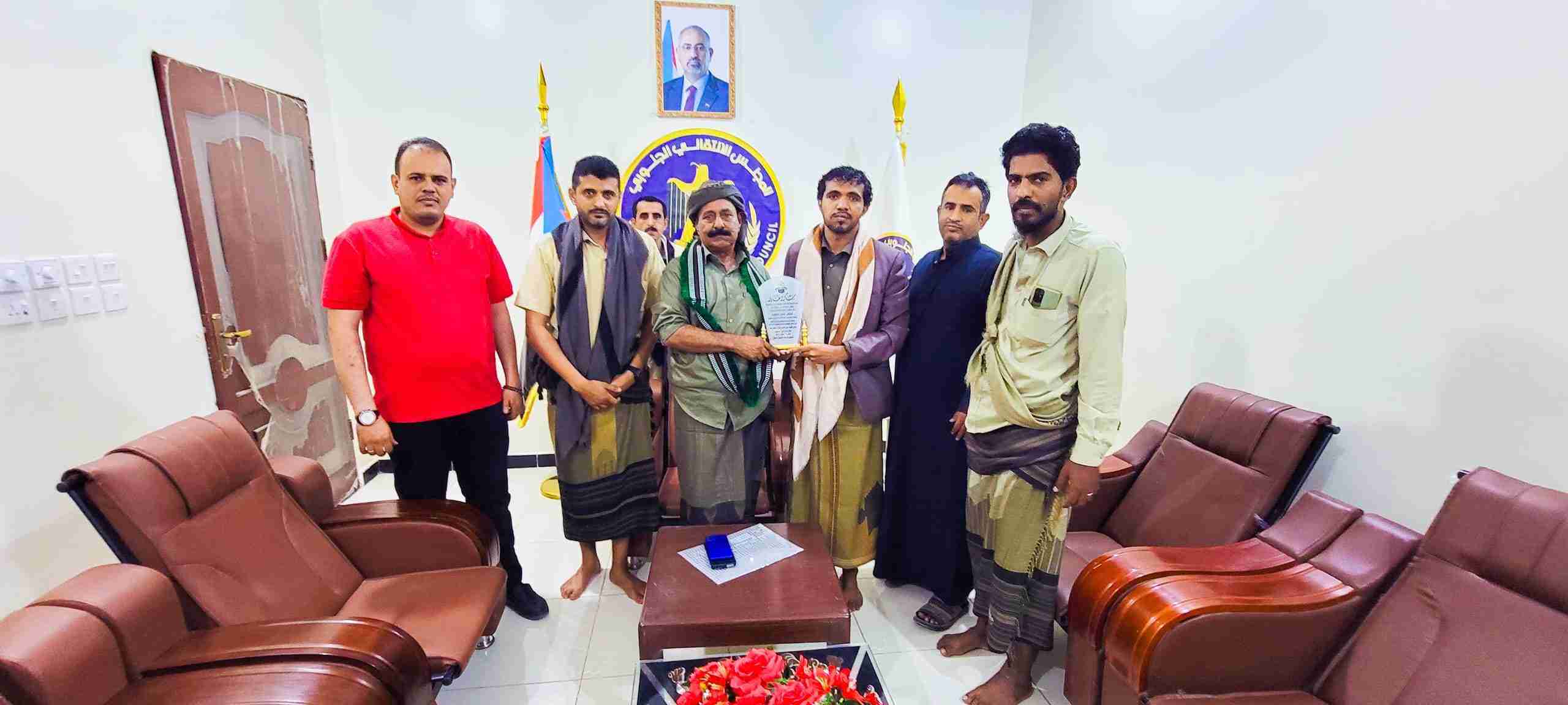 الشيخ لحمر رئيس انتقالي شبوة يتسلم درع شكر وتقدير من اللجنة المنظمة لبطولة غزة لكرة القدم*