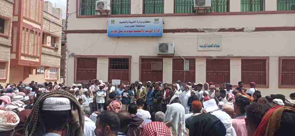 #استجابة لدعوة لجنة معلمي حضرموت.. مديرية غيل باوزير تشهد وقفة احتجاجية أمام مكتب التربية المديرية.