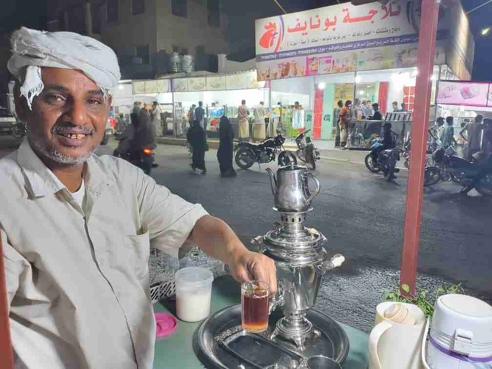 جديد المشاريع الصغيرة .. شاب يبدع في تقديم شاهي البخاري الحضرمي في سيئون