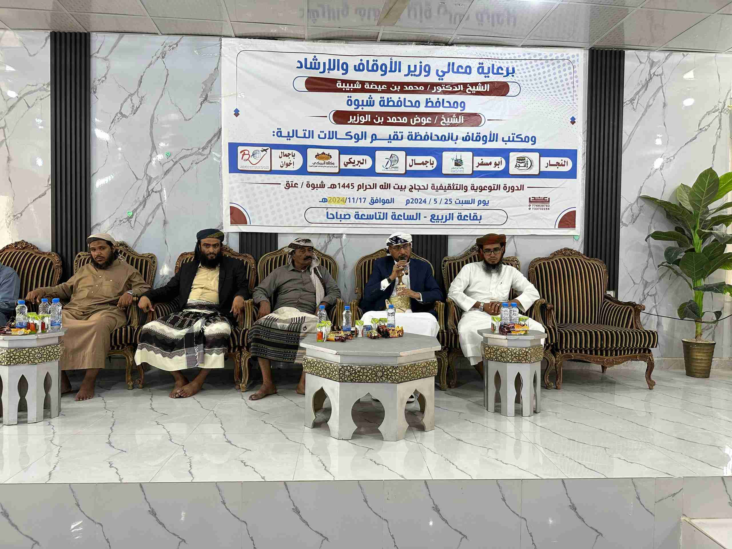 برعاية وزير الاوقاف والإرشاد ومحافظ شبوة ابن الوزير : الوكيل لمروق يدشن الدورة العملية والتطبيقية للحجاج والمعتمرين للعام الثاني على التوالي