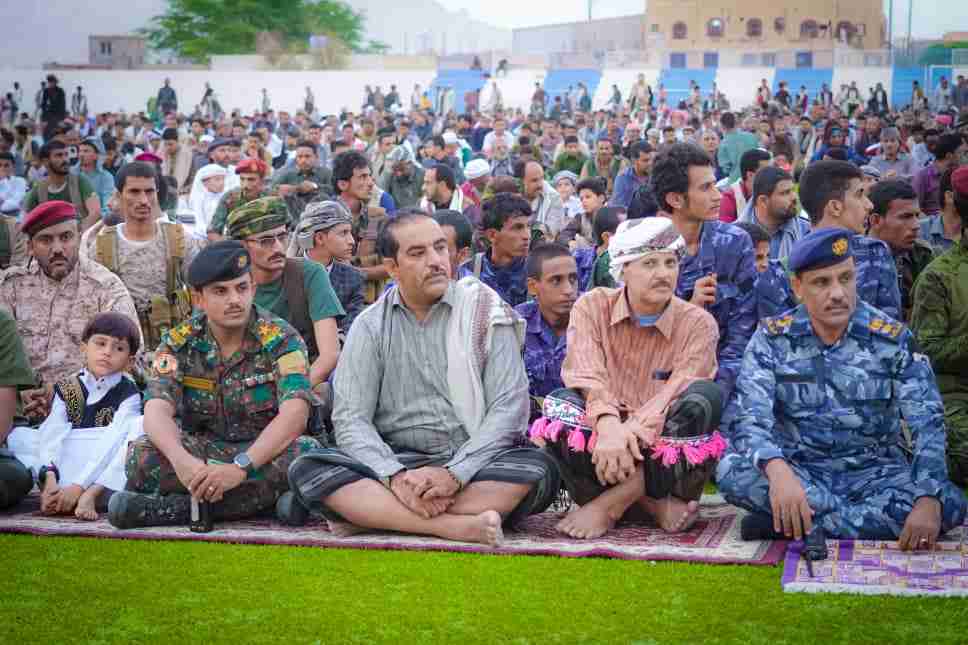وكيل المحافظة يؤدي صلاة عيد الأضحى مع جموع المصلين ويستقبل المهنئين ويزور المستشفيات والحزام الأمني لمدينة عتق