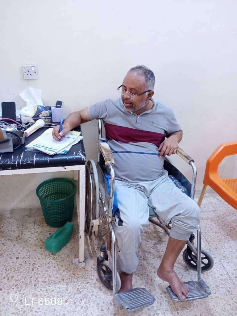 الدكتور فضل الأحمدي نموذج مّلهم في تحدي الإعاقة ويذهب كل صباح الى الدوام في العيادة.