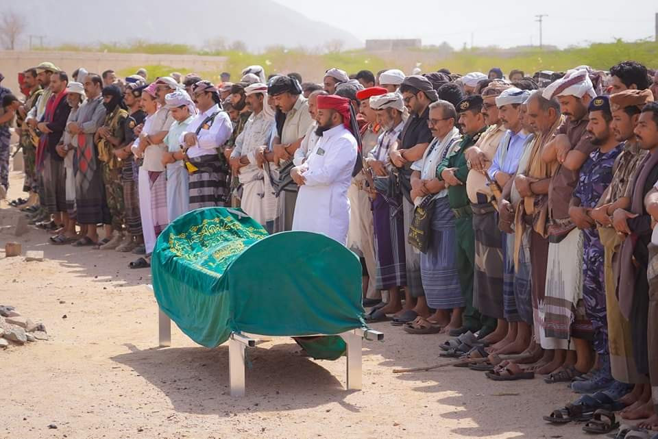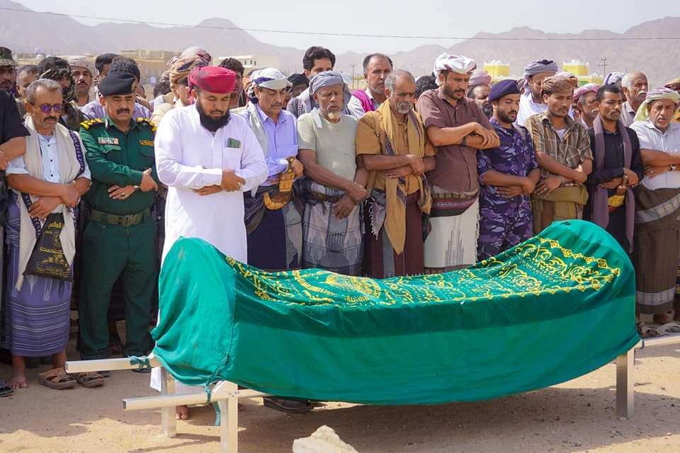 الأمين العام هشله يتقدم الموكب الجنائزي لمرافق المحافظ بن الوزير، المقدم عوض خميس.