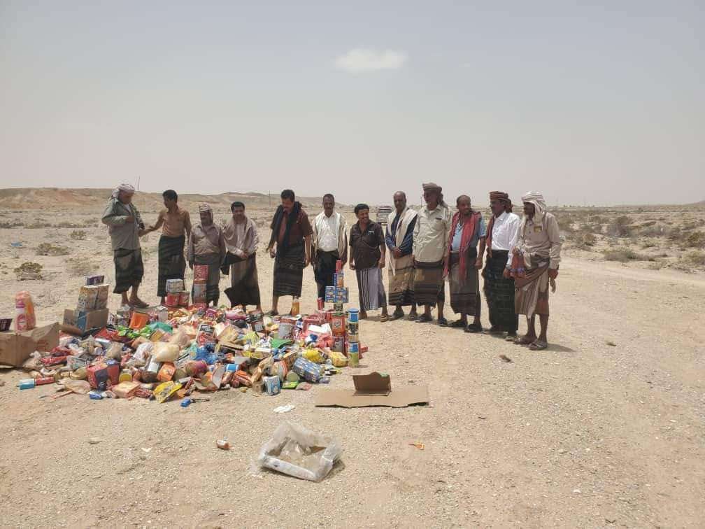 مكتب الصناعة والتجارة بمديرية رضوم" يتلف كميات من المواد الغذائية والاستهلاكية منتهية الصلاحية