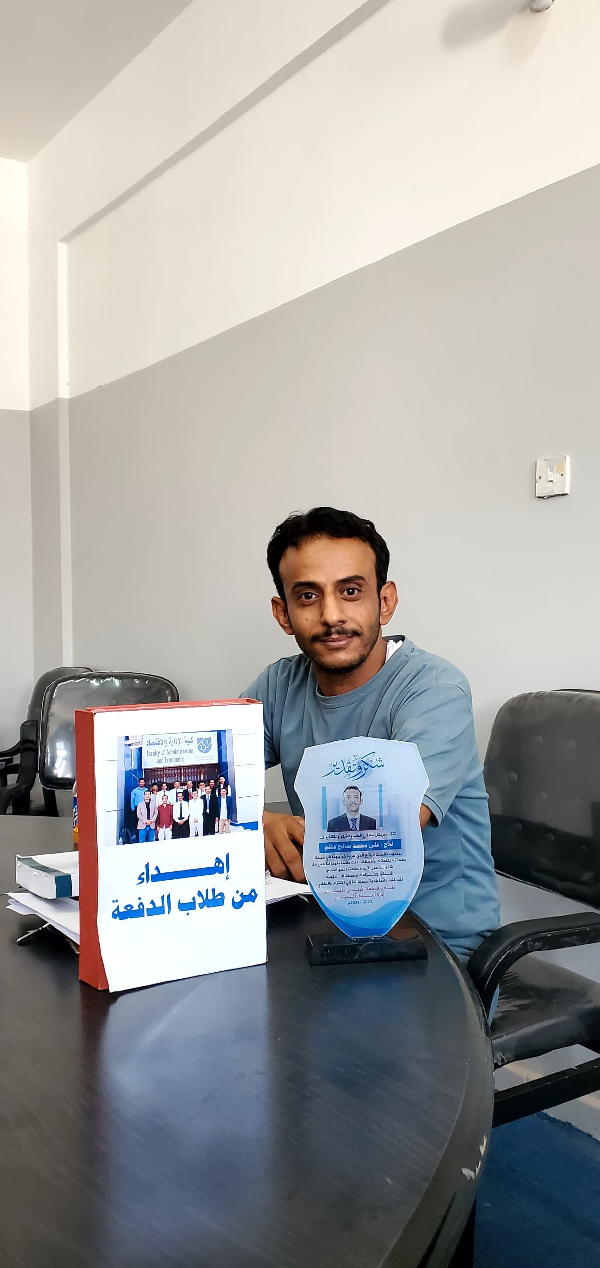 طلاب جامعة شبوة كلية الإدارة والاقتصاد الدفعة الأولى يكرمون بن مقلم نظير جهوده كمندوب لدفعتهم