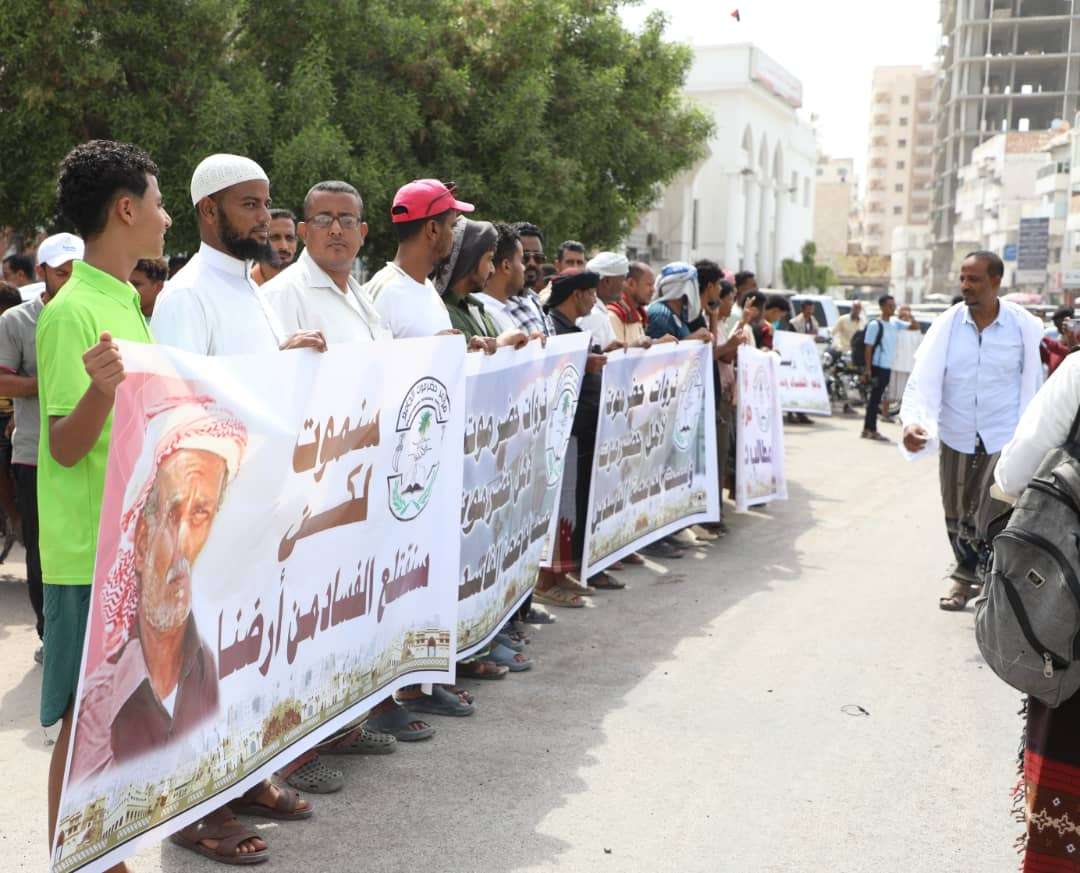 وقفة احتجاجية سلمية في المكلا بمشاركة جموع غفيرة من مواطني حضرموت ومن مختلف الأعمار