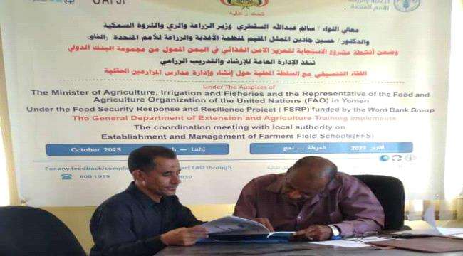 وأشاد مدير الادارة الاقتصادية والخدمية، بجهود مكتب الزراعة، مؤكداً أن هذا اللقاء كان مثمراً وناجحاً وأفضى إلى نتائج مهمة سيتم الأخذ بها ووضعها على طاولة المعنيين في المجلس الانتقالي بالمحافظة لتعزيز الجهود الزراعية وتطويرها بما يصب في مصلحة مكتب الزراعة والري والمزارعين.