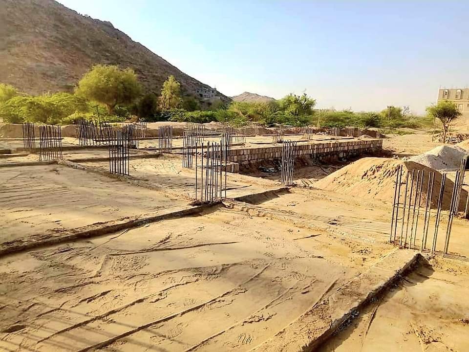 تواصل الأعمال الإنشائية لمدرسة الحنك للبنات ضمن مشروع دعم التعليم في محافظة شبوة بتمويل الأشقاء في الإمارات.