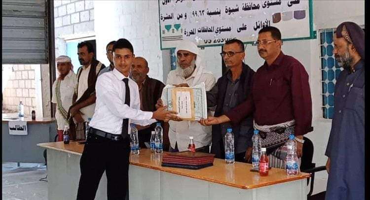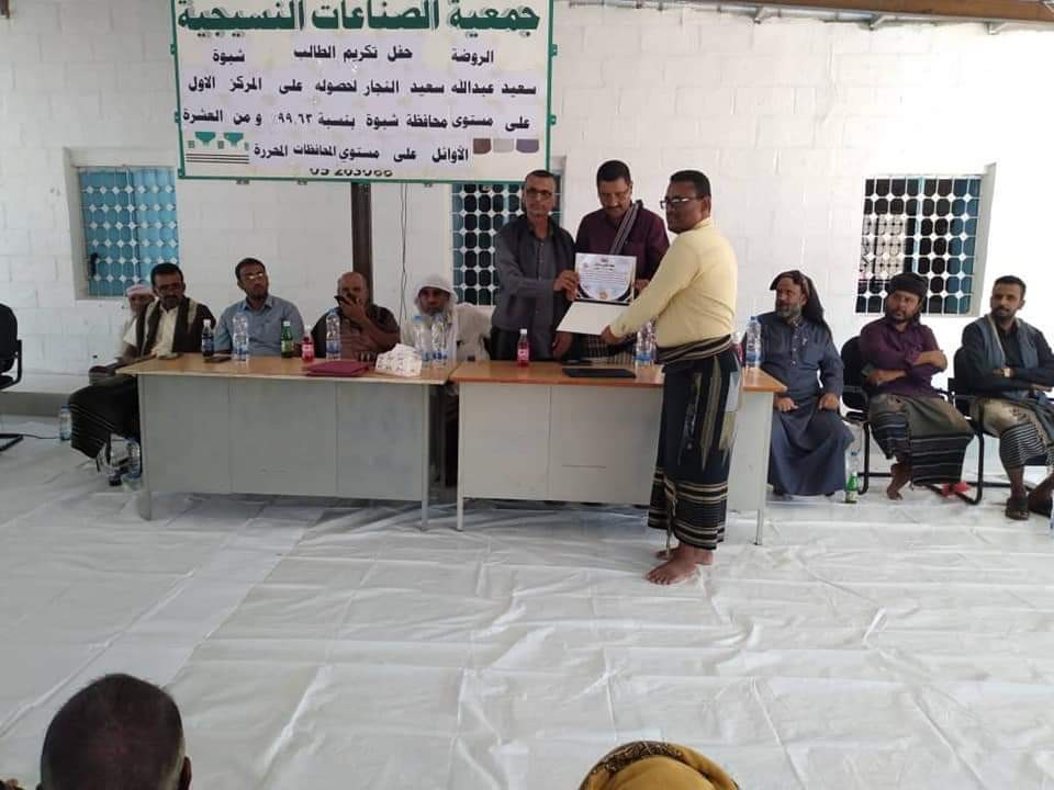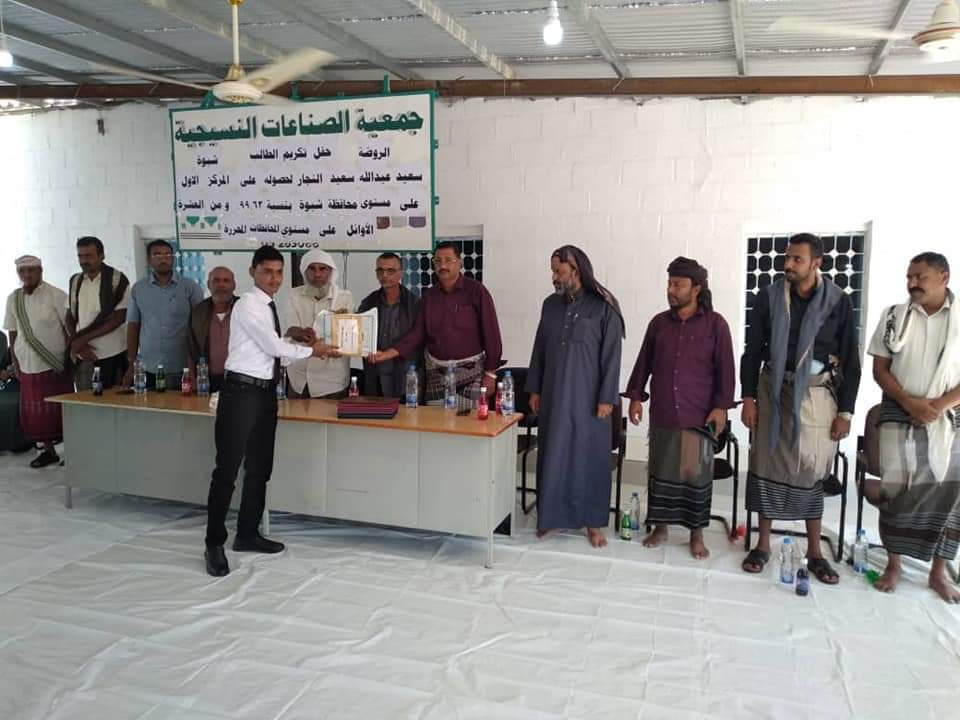 نظير تفوقة العلمي.. جمعية الصناعات النسيجية بشبوة تكرم الطالب سعيد النجار