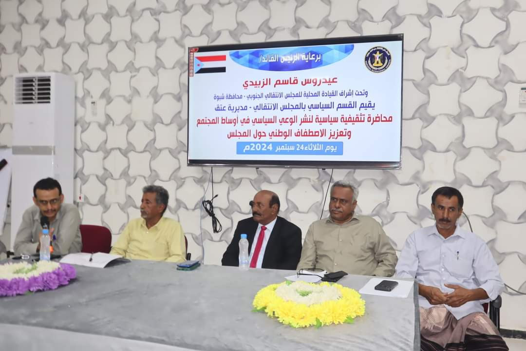 انتقالي عتق ينظم ندوة بعنوان "نشر الوعي السياسي في أوساط المجتمع وتعزيز الاصطفاف الوطني حول المجلس"