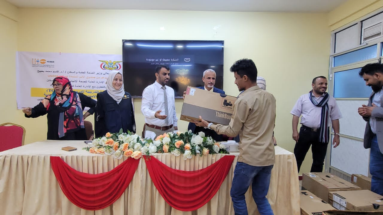 الشبحي يختتم الدورة التدريبية لتدريب مدربين TOT على نظام الإمداد اللوجستي للصحة الإنجابية ويكرم جميع المشاركين بأجهزة لابتوب