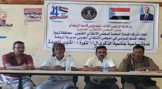انتقالي الروضة ينظم ندوة سياسية عن "ثورة 14 أكتوبر ومستجدات الثورة الجنوبية"