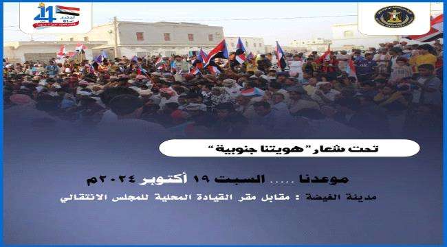 وقال فريق التنسيق القبلي والاجتماعي للجنة الاستشارية بالمهرة وبناء على الدعوة التي أطلقتها الهيئة التنفيذية للمجلس الانتقالي بمحافظة المهرة بإقامة مليونية الهوية الجنوبية في مدينة الغيظة احتفاءً بالذكرى الـ٦١ لثورة الـ 14 اكتوبر وللتأكيد على مطالب أبناء محافظة المهرة وتمسكهم بخيار التحرير والاستقلال واستعادة الدولة الجنوبية كاملة السيادة من حوف شرقا إلى باب المندب غربا.