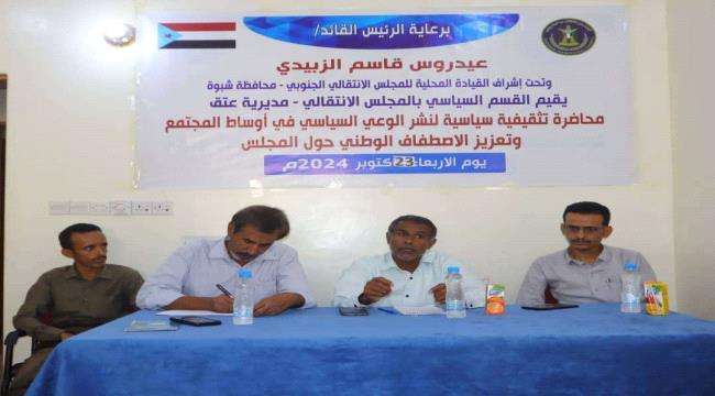 انتقالي عتق ينظم ندوة "نشر الوعي السياسي في أوساط المجتمع وتعزيز الاصطفاف الوطني"