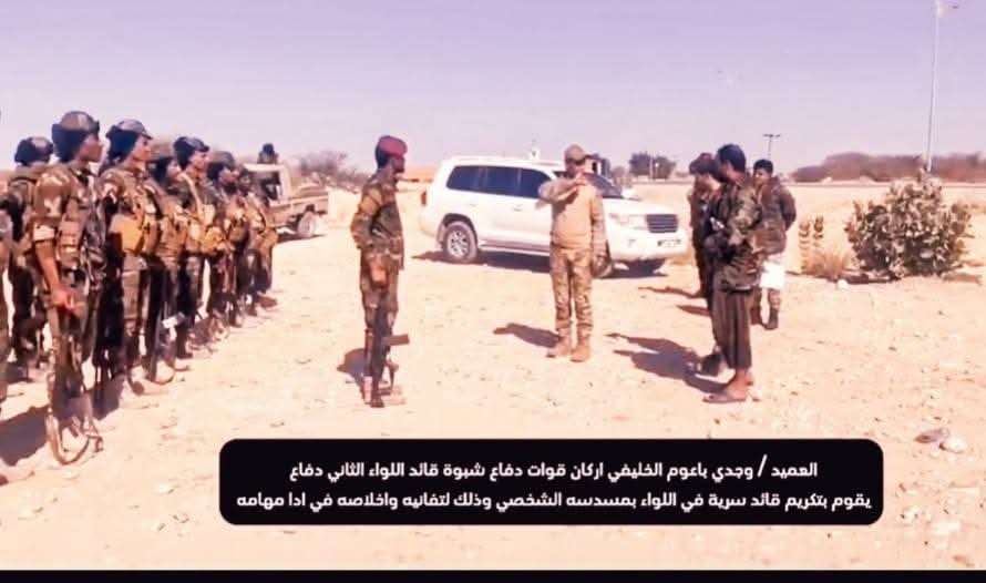 عتق / عادل القباص في لفتة تعكس روح التقدير والوفاء، قام العميد وجدي باعوم الخليفي، أركان قوات دفاع شبوة، بتكريم أحد قادة السرايا بمسدسه الشخصي. هذا التكريم يأتي تعبيرًا عن الامتنان للدور البطولي والمتميز الذي يؤديه القائد في خدمة الأمن الوطني. هذه الخطوة تأتي كرسالة دعم وتحفيز من القيادة العليا نحو تعزيز روح العطاء والفداء بين أفراد قوات دفاع شبوة ، وتؤكد على أهمية الاعتراف بالجهود المبذولة في حماية الوطن. لاقى هذا التكريم إشادة واسعة، إذ يعكس التلاحم الكبير بين القيادة وأفرادها، ويُرسخ قيم الاحترام والثقة المتبادلة في صفوف القوات ، للدفاع عن حياض الوطن.في لفتة تعكس روح التقدير والوفاء، قام العميد وجدي باعوم الخليفي، أركان قوات دفاع شبوة، بتكريم أحد قادة السرايا بمسدسه الشخصي. هذا التكريم يأتي تعبيرًا عن الامتنان للدور البطولي والمتميز الذي يؤديه القائد في خدمة الأمن الوطني. هذه الخطوة تأتي كرسالة دعم وتحفيز من القيادة العليا نحو تعزيز روح العطاء والفداء بين أفراد قوات دفاع شبوة ، وتؤكد على أهمية الاعتراف بالجهود المبذولة في حماية الوطن. لاقى هذا التكريم إشادة واسعة، إذ يعكس التلاحم الكبير بين القيادة وأفرادها، ويُرسخ قيم الاحترام والثقة المتبادلة في صفوف القوات ، للدفاع عن حياض الوطن.