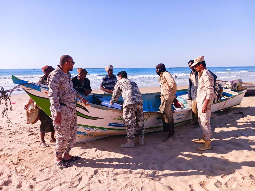 قوات خفر السواحل تستمر في حصر قوارب الصيد في ساحل مديرية رضوم