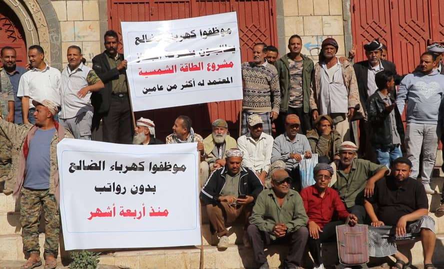 موظفو "كهرباء الضالع" ينفذون وقفة احتجاجية تنديداً بتدهور أوضاع المؤسسة