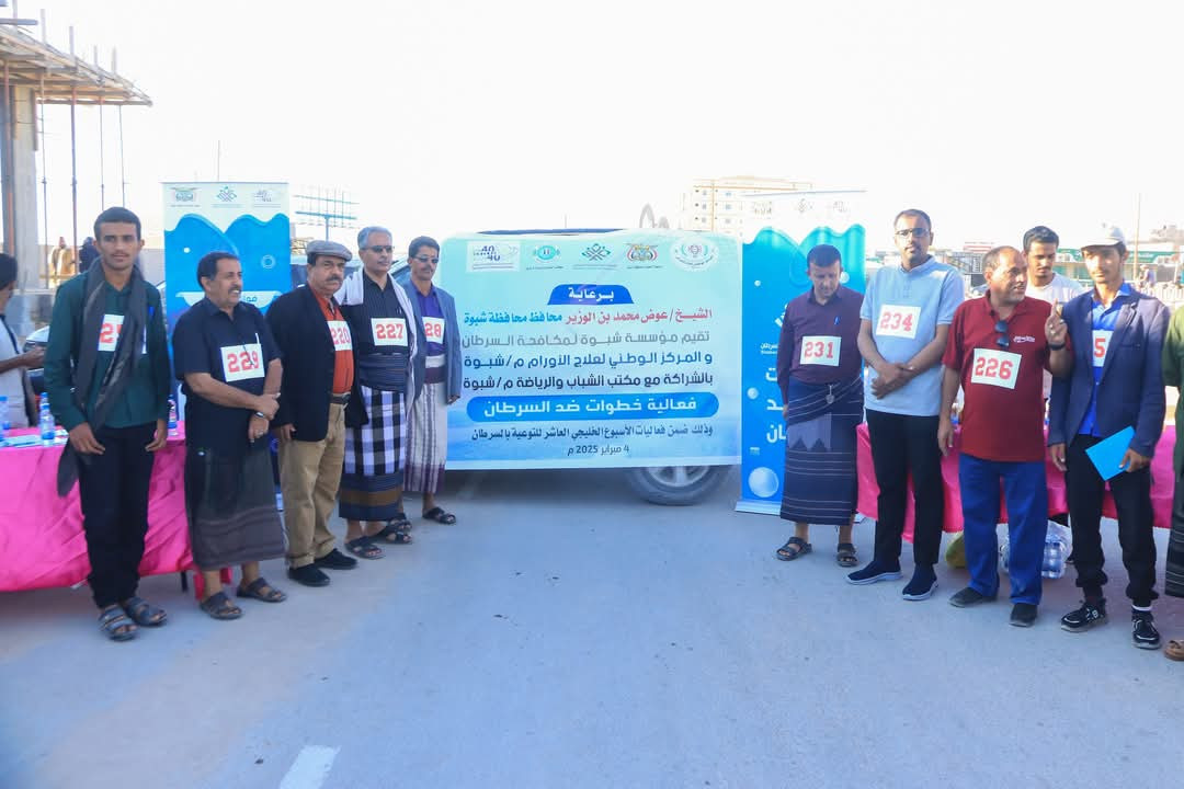 بمشاركة 65 فرد ..مؤسسة شبوة لمكافحة السرطان تقيم فعالية المشي في مدينة عتق بمناسبة اليوم العالمي لمكافحة السرطان