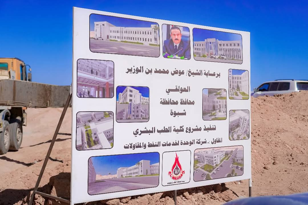شبوة: بدء صب القواعد الخرسانية للمرحلة الأولى من مشروع إنشاء كلية الطب بجامعة شبوة.