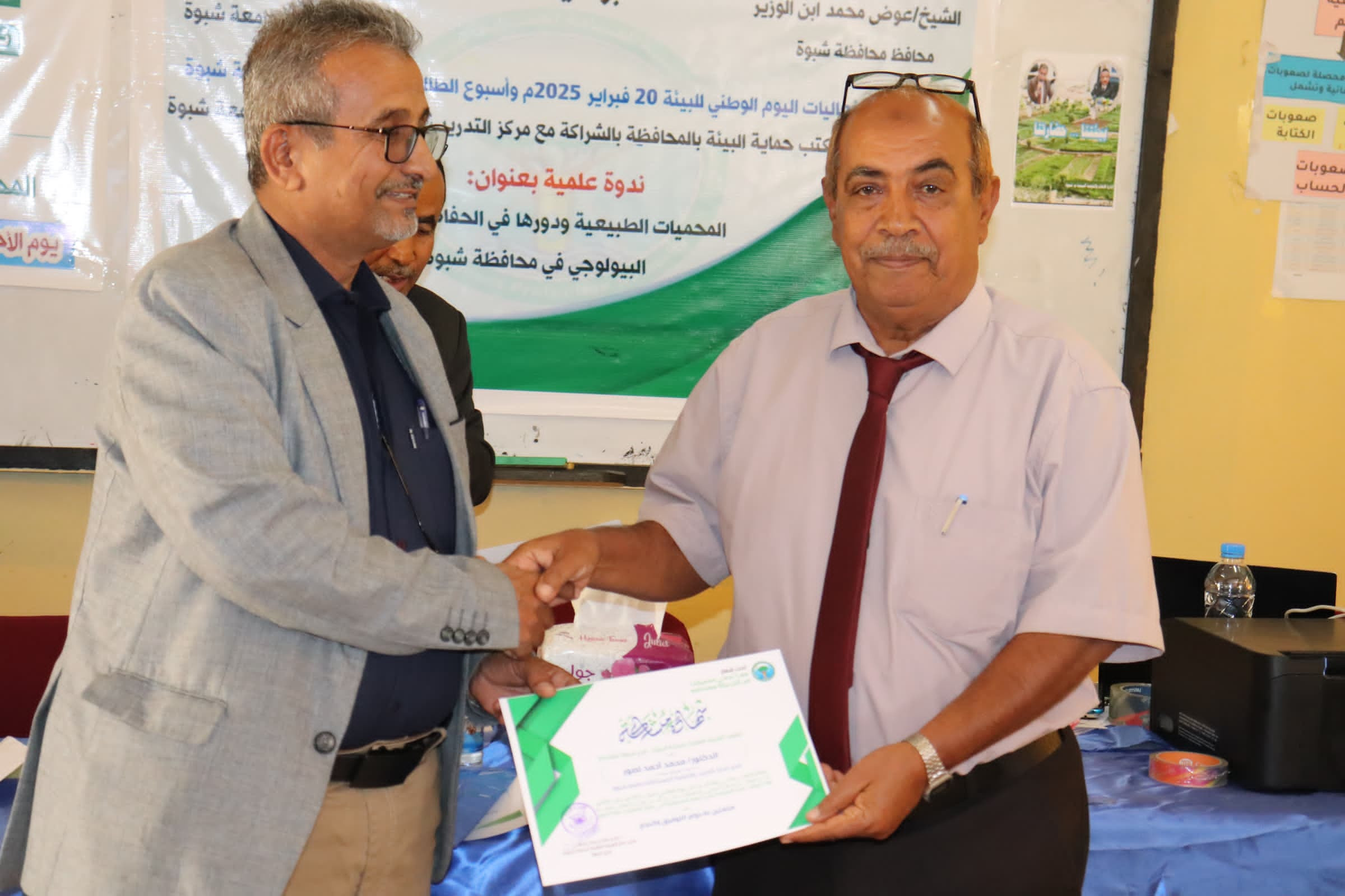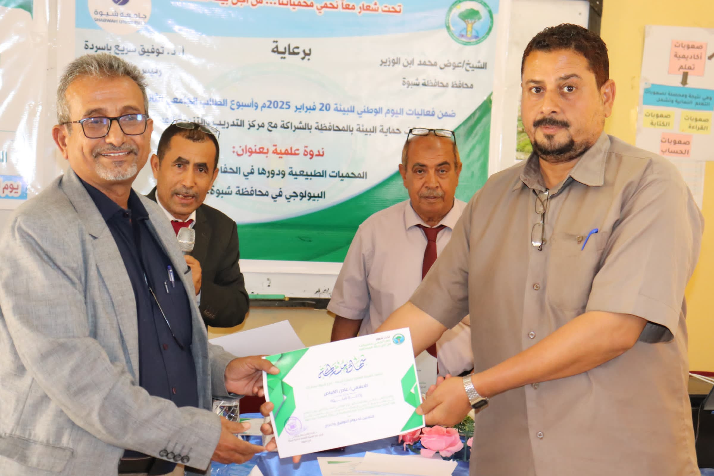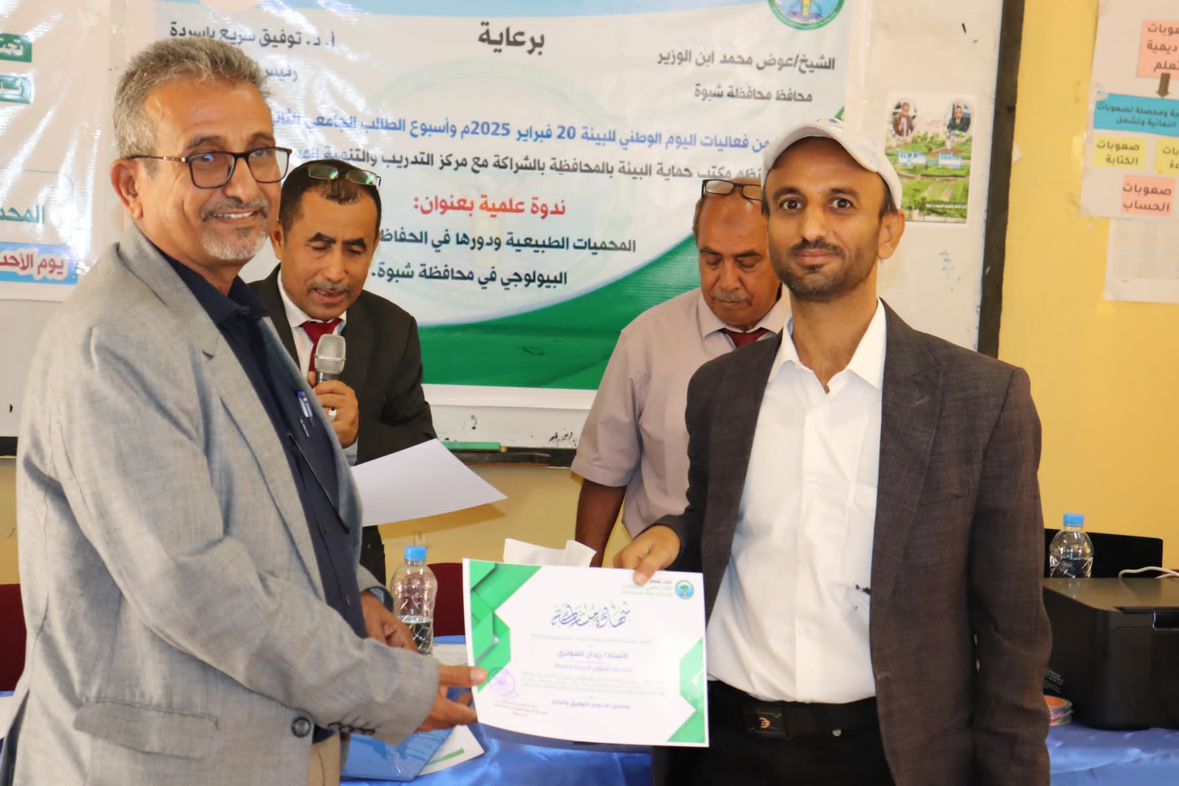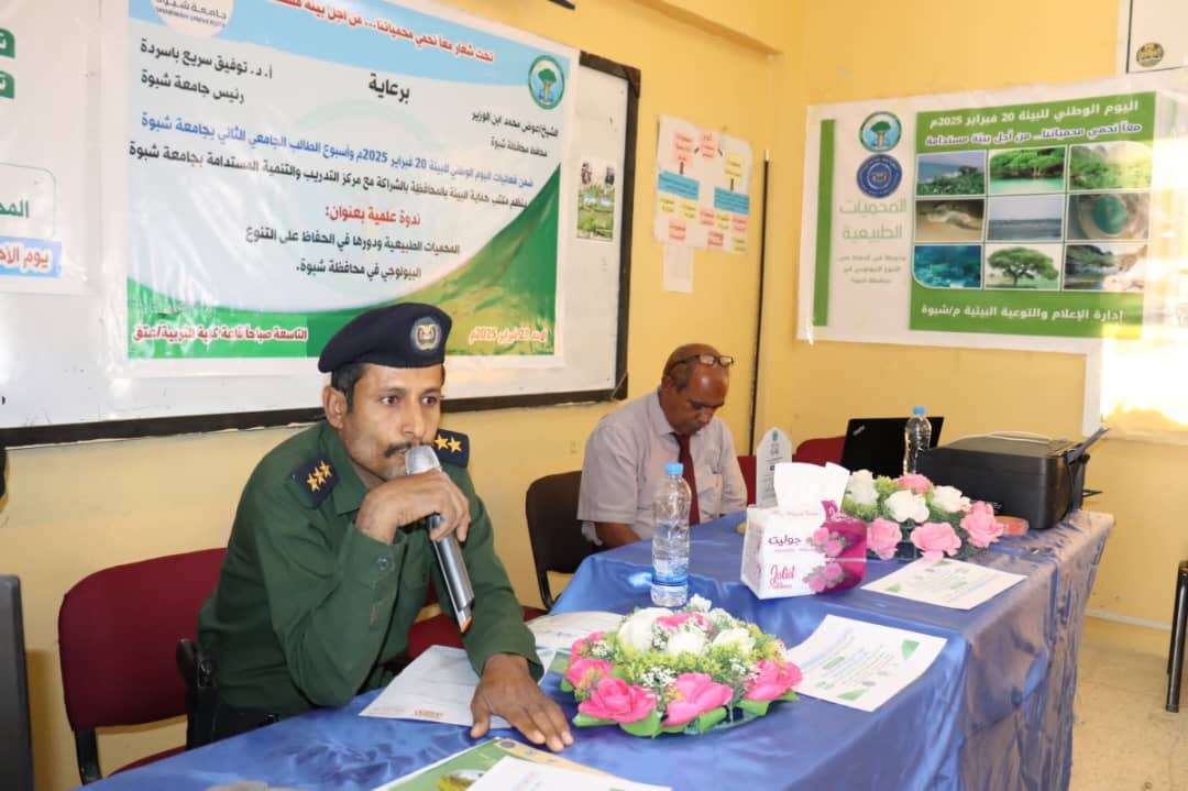 الهيئة العامة لحماية البيئة ومكتبها في شبوة وبمشاركة مركز التدريب والتنمية المستدامة ينظمان ندوة علمية حول المحميات الطبيعية ودورها في الحفاظ على التنوع البيولوجي