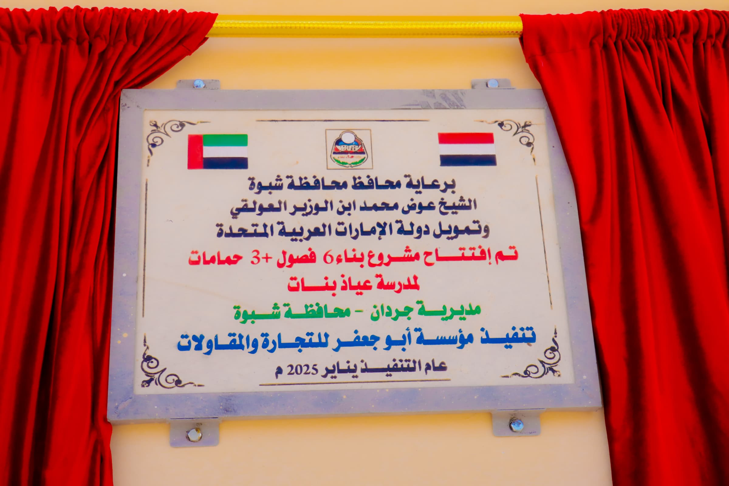 الوكيل الطوسلي يفتتح مشروع مدرسة عياذ للبنات في مديرية جردان بتمويل إماراتي.