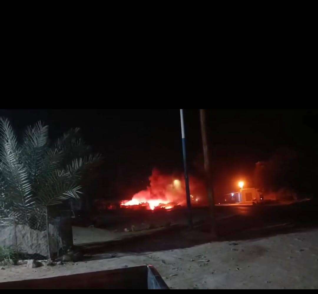 نشوب حريق هائل في مستودع للخردة بمنطقة الغرفة بمديرية سيئون