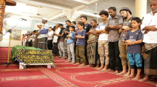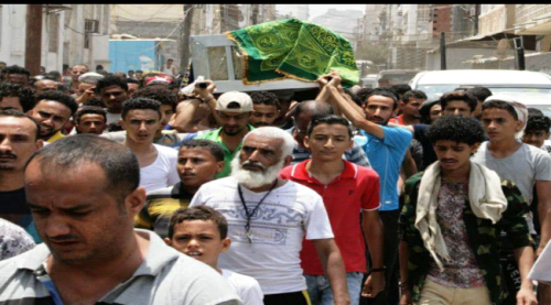 شاهد الصورشييع جثمان القتيل "عمرو حزام" وسط حزن عم المدينة العتيقة عدن