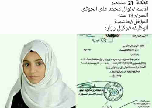 تناقلت بعض المواقع الإخبارية فضيحة محمد علي الحوثي الذي عين ابنته الطالبة في المرحلة الأساسية وكيل اول محافظة حجة. ويبدو ان الحوثي اعطى ابنته الصغيرة امتيازات إضافية في وظيفتها الكبيرة، وهي اعفاؤها من الدوام اصلا واستخدام صورة طالبة اخرى لتحل محل شخصيتها حتى لا يعرفها احد. وقد تناقلت المواقع صورة الطالبة الأخرى، وتدعى عزة منصورة، كاتبة مقال"البعد الاستراتيجي لزيارات بن دغر" ملصقين فيها تهمة فساد لا علاقة لها فيه. وبذلك يتكشف للشارع مستوى الفساد الذي تمارسه هذه الجماعة وإعلامها، والذي لم يقتصر على الجانب السياسي والإداري فحسب، بل وتعدى القيم الأخلاقية للمجتمع اليمني المحافظ الرافض لمثل هذه السلوكيات.