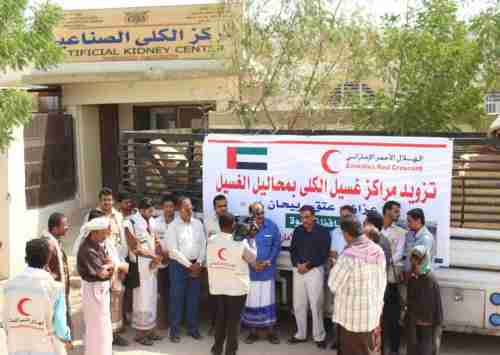 الهلال الأحمر الإماراتي يوزع أدوية علاجية ومحاليل غسيل على مراكز غسيل الكلى في شبوة.