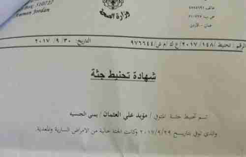 وكشفت وثائق رسمية من قوات أمن المطار الأردني تحويل جثة المواطن اليمني " مؤيد علي عثمان " إلى التحنيط بعد إبلاغ أسرته بوفاته داخل الحجز .