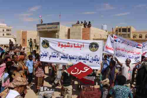 شارك اليوم المئات من أبناء محافظة شبوة بمديرتها في عاصمة عتق بشبوة حيث تجمع المئات في الساحة العامة أمام بريد عتق ساحة الشهداء العامري والحبيش لينطقل الجميع في مظاهرة جماهيره تقدمهم قيادة الحراك الجنوبي والمقاومة والجنوبية والشخصيات الجنوبية الشيخ علي محسن السليماني والشيخ علي ثابت والمناضل صالح بلال والشيخ لحمر لسود والناشط السياسي صالح الدويل وعدد كبير من قيادات شبوة المدنية والعسكرية وكانت قوات من النخبة الشبوانية والجيش والأمن والمقاومة الجنوبية بشبوة قامت بتامين المظاهرة حيث سارة عبر شوارع عتق مرددين الشعارات الثورة الجنوبية ومطالبين برحيل الفاسدين عن مفاصل الدولة بشبوة ومطالبين بوحدة الصف الجنوب والوقف مع المجلس الانتقالي الجنوبي وإلقاء في نهاية المظاهرة الناشط السياسي الجنوبي صالح الدويل الباراسي بيان المسيرة طالب فيها برحيل الفاسدين عن محافظة شبوة وطالب حسب البيان الرئيس هادي بتعين محافظ لشبوة بعيداُ عن الحزبية والمناطقية لخدمة شبوة عامه— وطالب البيان برحيل الفاسدين عن محافظة شبوة ان شبوة لن تبقى حقل تجارب واعلن وقف ابناء شبوة مع المجلس الانتقالي الجنوبي والزحف الى شارع مدرم بعدن للمشاركة في فعاليات ثورة 14اكتوبر – وقصيدة شعرية لشاعر الجنوبي الثائر الجنوبي بن ناجي وطالب التحالف بقيادة السعودية والإمارات دعم جبهة بيحان وعسيلان بشبوة وتشكيل غرفة عمليات لها في المحافظة شبوة