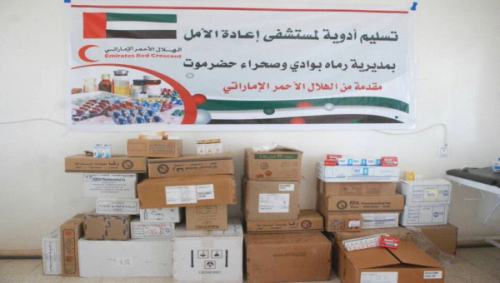 وزعت " هيئة الهلال الأحمر الإماراتي " اليوم أدوية نوعية على مستشفى إعادة الأمل بمديرية رماه بصحراء حضرموت بهدف الارتقاء بمستوى الخدمات الصحية وتوفير أهم الاحتياجات النوعية والتجهيزات الضرورية للمستشفيات والمراكز الصحية في اليمن .