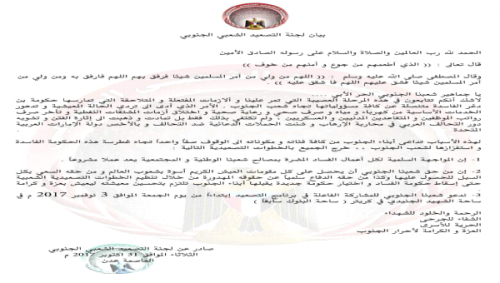 صادر عن اللجنة العليا للتصعيد الشعبي الجنوبي