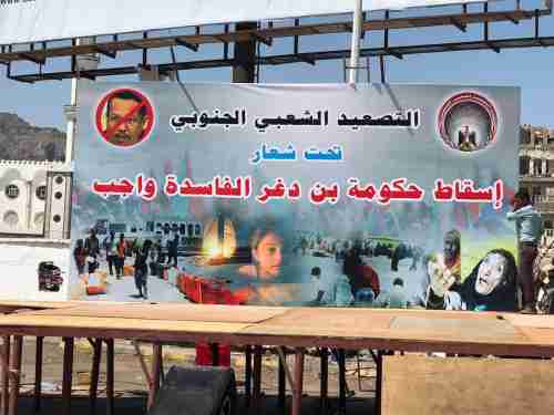 وقد رفع المشاركون صورا معبرة عن رفضهم المطلق لبقاء الحكومة التي يترأسها احمد بن دغر و كتبت عبارات ورسائل بجوارها مثل ( ترحل حكومة الفساد و بن دغر ) وأخرى ( اسقاط حكومة الفساد واجب علينا ) و( نرفض سياسة حكومة بن دغر الفاشلة وانتهاكاتها المستمرة ضد شعب الجنوب ) و( ياحكومة الوباء رحيلكم هو الداء) و ( ياحكومة الفساد ارحلي من البلاد ) وغيرها من العبارات كما رفع المشاركون لافتات تحمل صور مؤثرة عن العبث الحكومي خلال 3 اعوام من الفشل وكتبت عبارات الإدانة بإسم لجنة التصعيد الشعبي